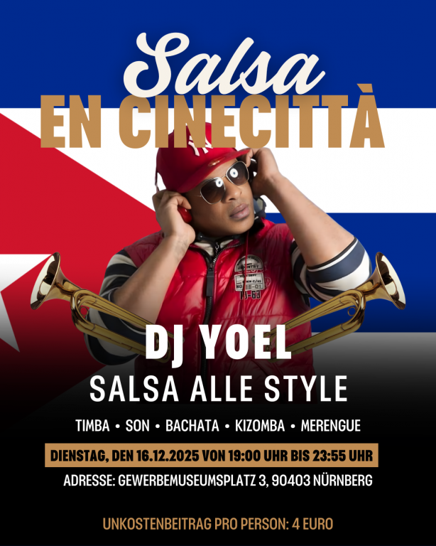 Seid dabei und verpasst nicht den Tanzabend mit der Mischung von DJ Yoel Diaz de Cuba mit dem Besten aus Salsa, Bachata, Kizomba, Son und Merengue.